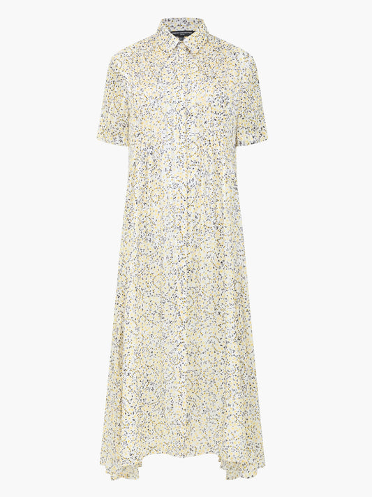 French Connection Bonnie Julia Satin Shirt Dress White Yellow Multi
