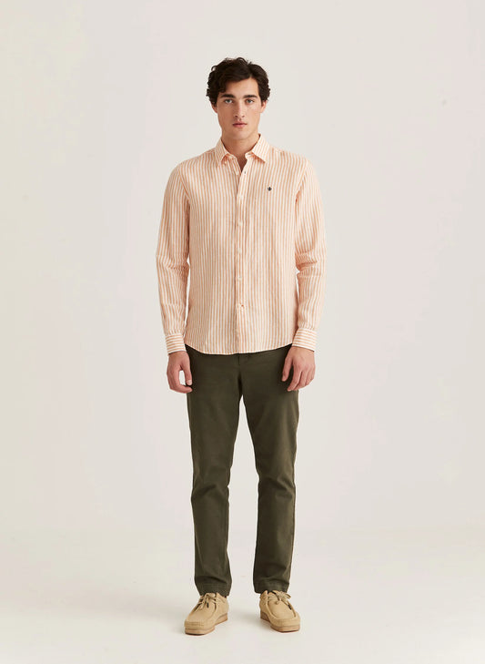 Morris Douglas Linen Stripe Shirt Orange