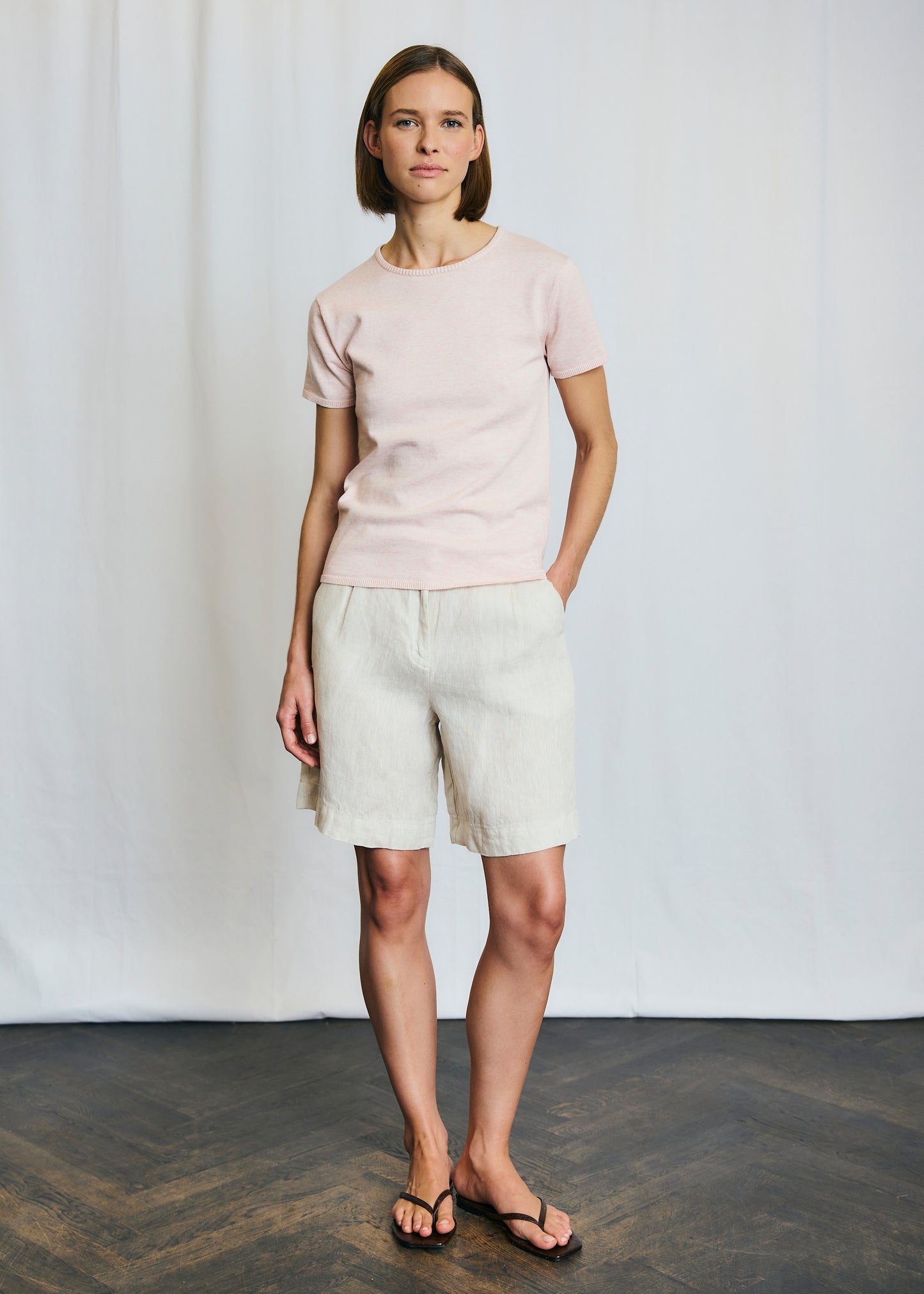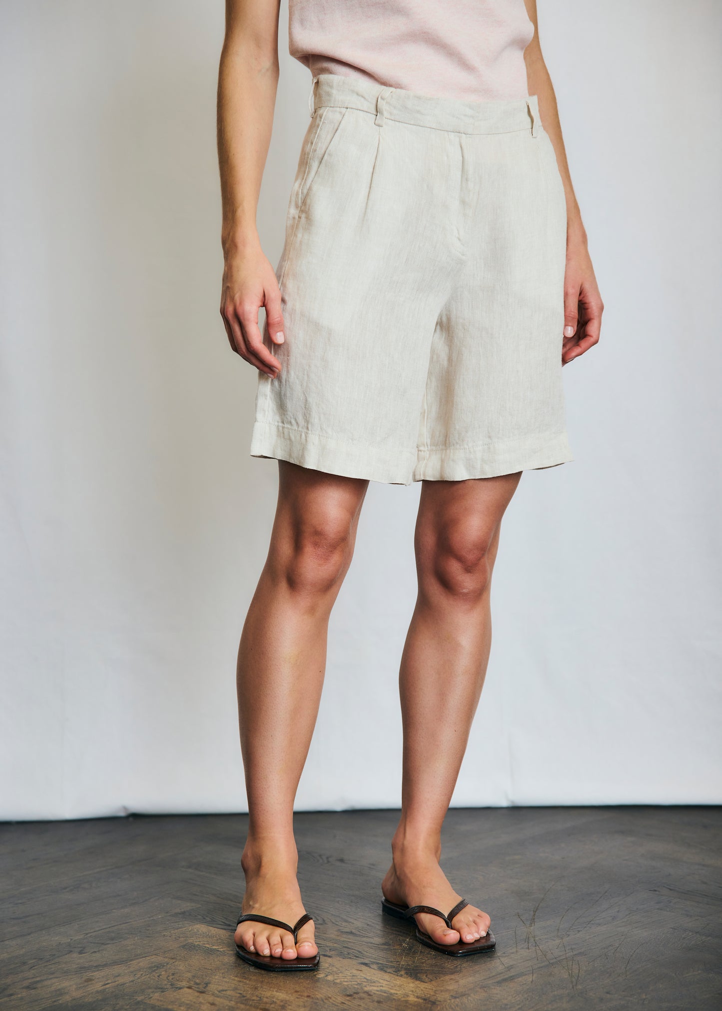 Eva är ett par linneshorts från Bruun & Stengade i lite dressad modell med knäppning.