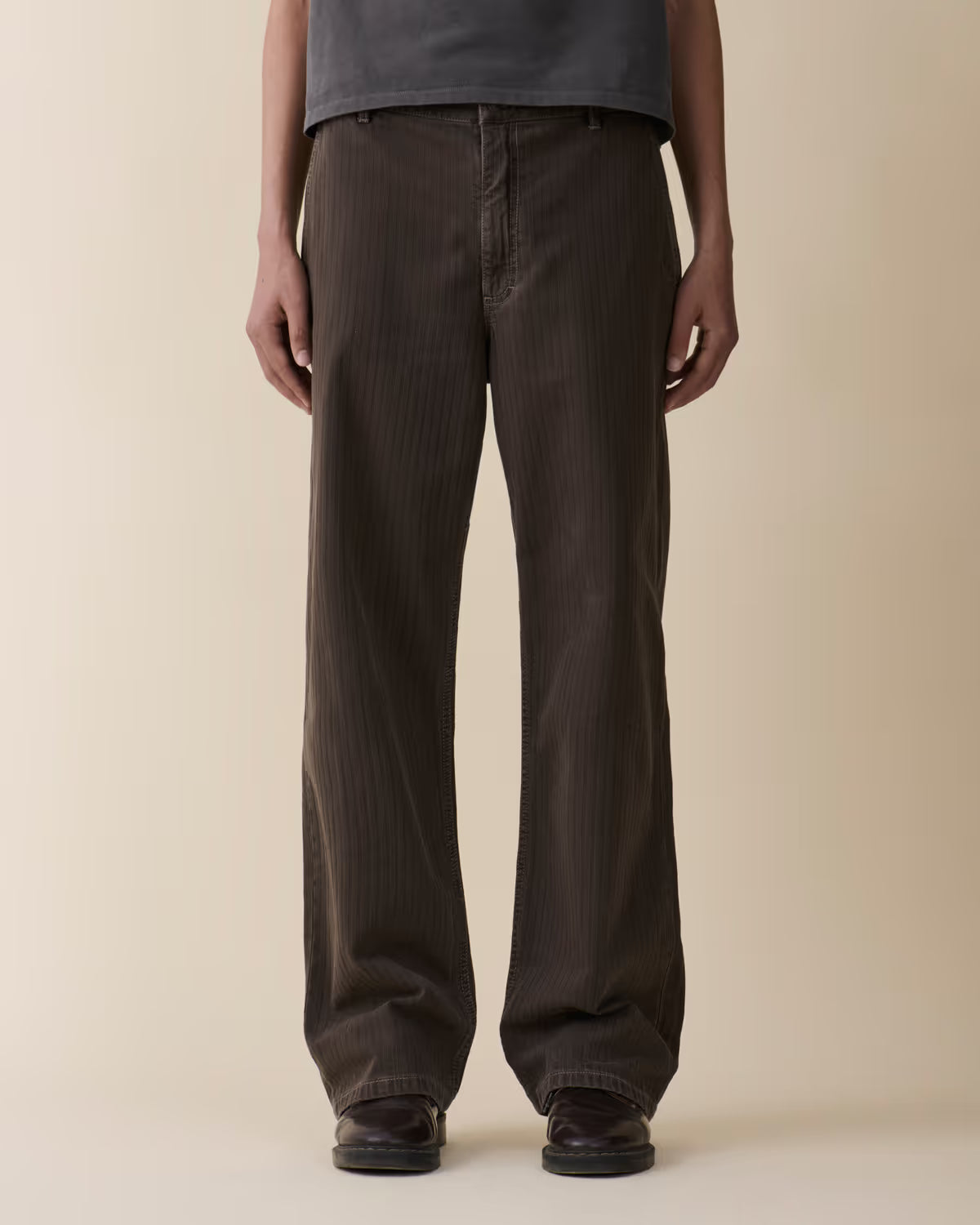 ‘Genua Chino’ is a casual trouser with a mid-rise and wide, straight leg, featuring slanted pockets at the front, and patch pockets at the back.Model is 188 cm/6'2” and wears waist 31 and length 34.
