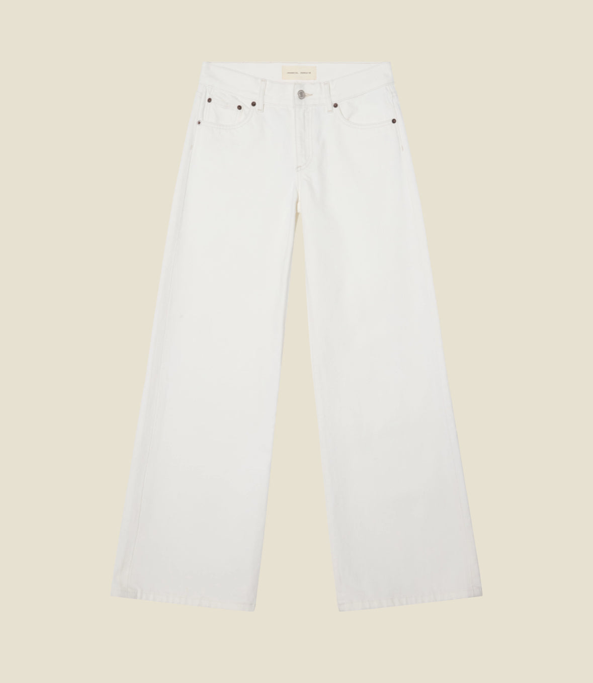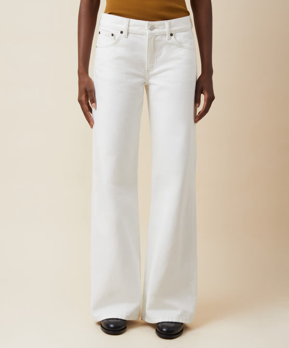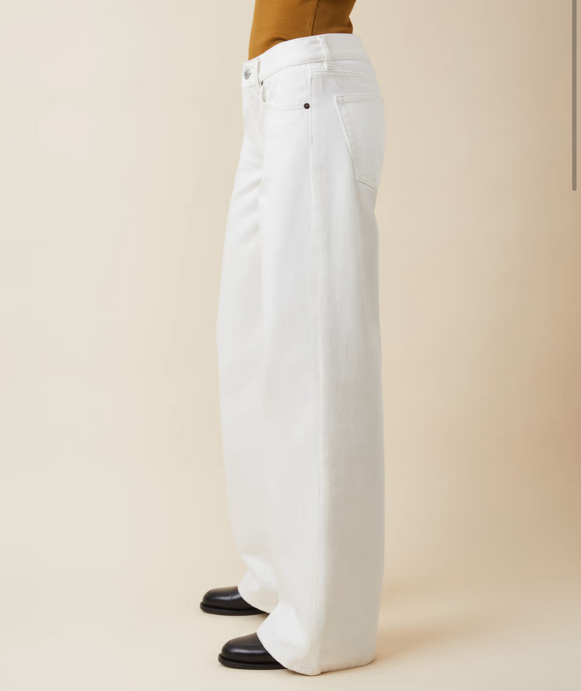 ’Kyoto’ is an effortlessly cool low waist denim with a slouchy loose flared silhouette. Featuring a zip fly, low waist and a wide leg from the thigh becoming even wider in the bottom. Made in a brown yarn dyed denim with more than 50% recycled content, finished with a heavy stonewash effect, and classic tobacco stitching.