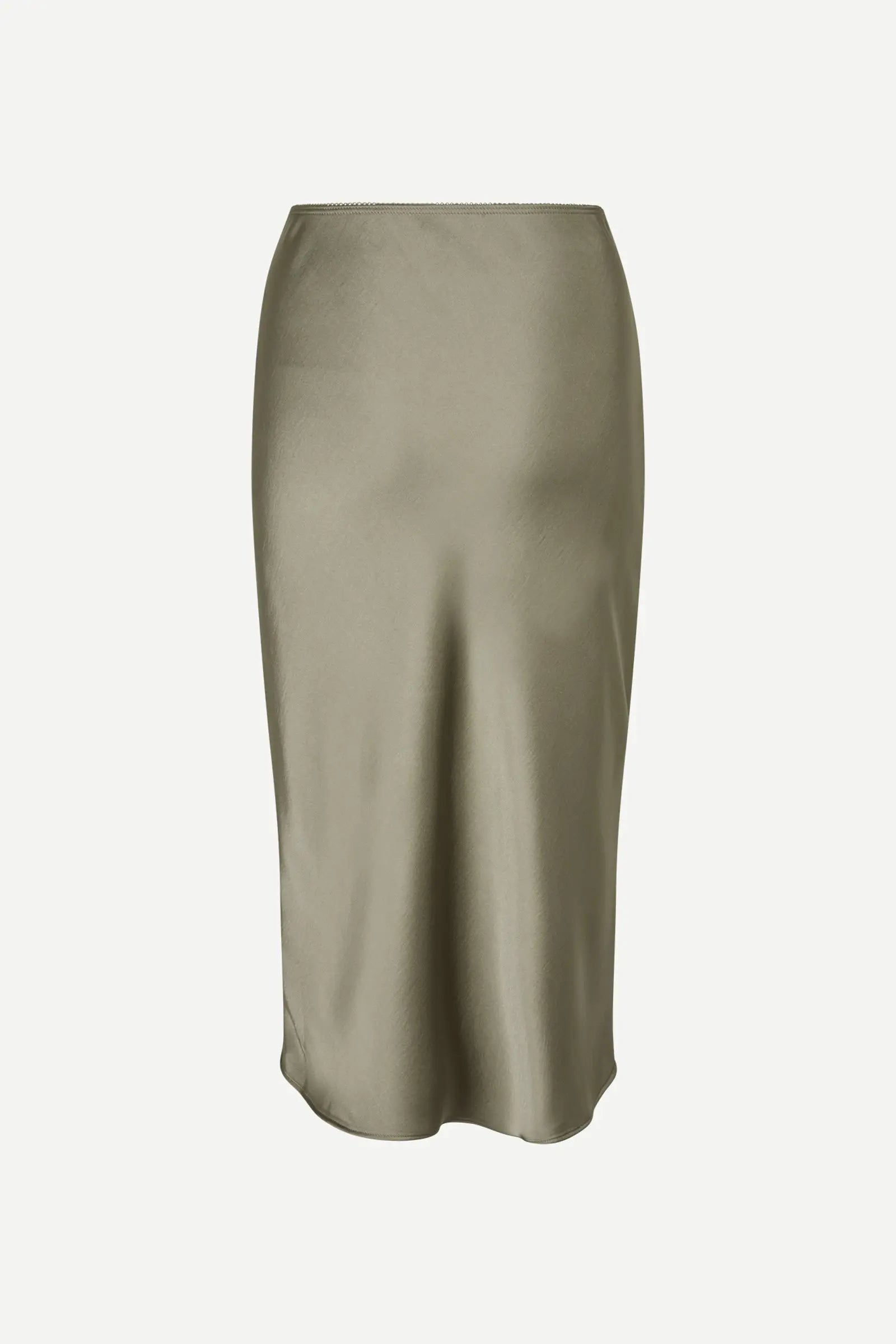 Satin midi skirt with a slim fit. Elasticated waistband with scalloped edges. Main material made from a blend with LENZING™ ECOVERO™ Viscose. This product contains LENZING™ ECOVERO™ Viscose, certified with the EU Ecolabel for textile products (licence no. AT/016/001) for environmental excellence.