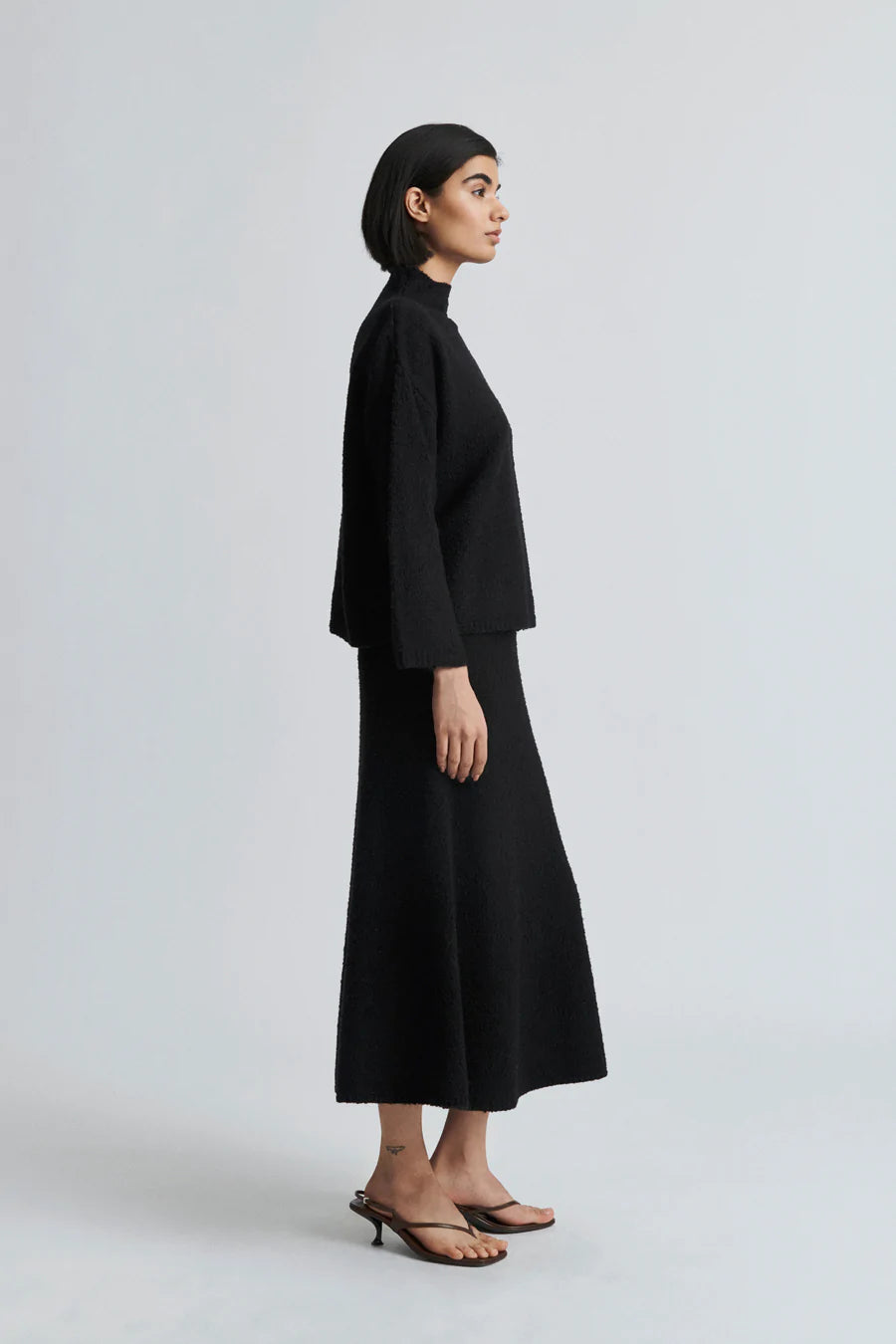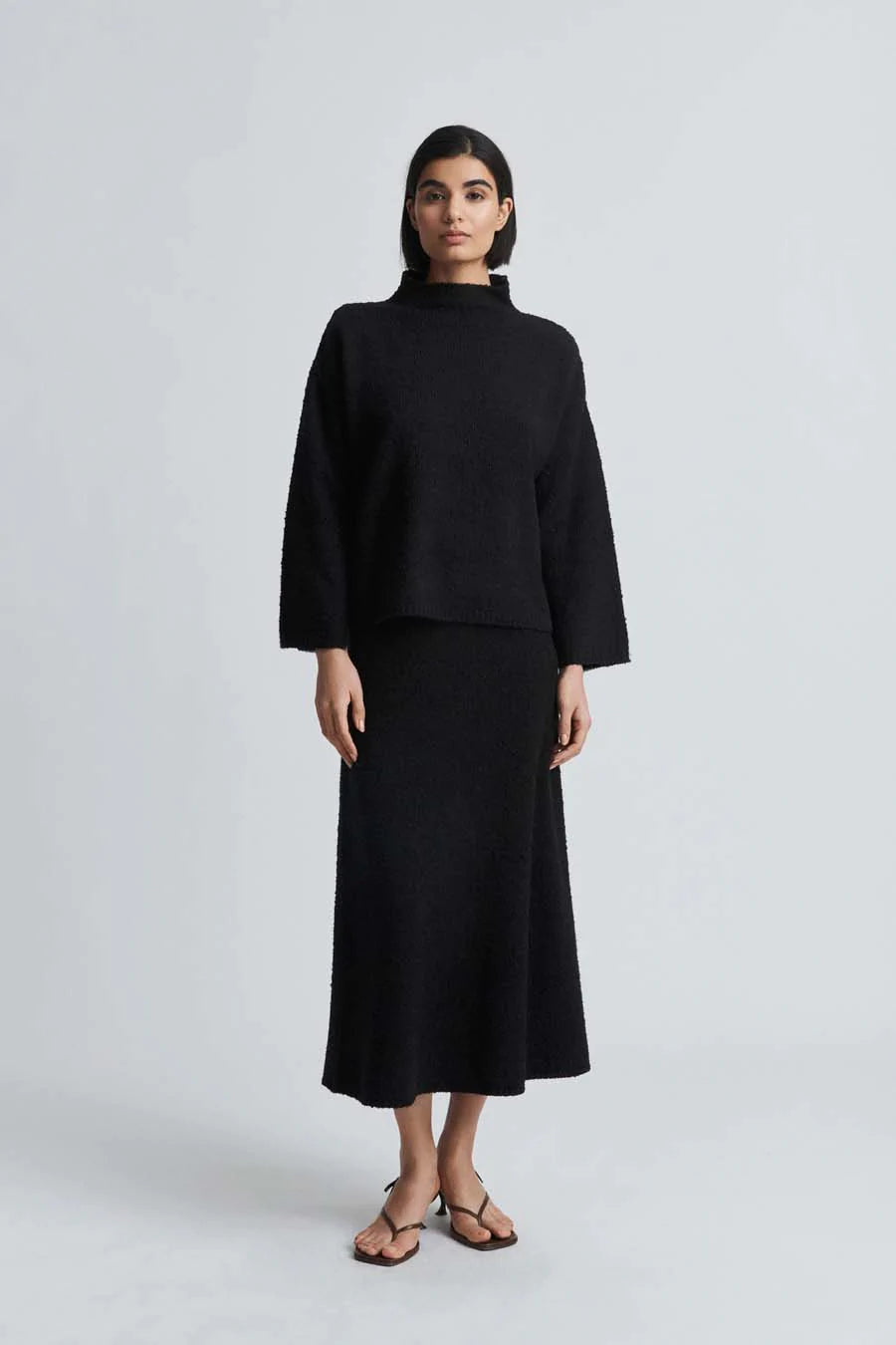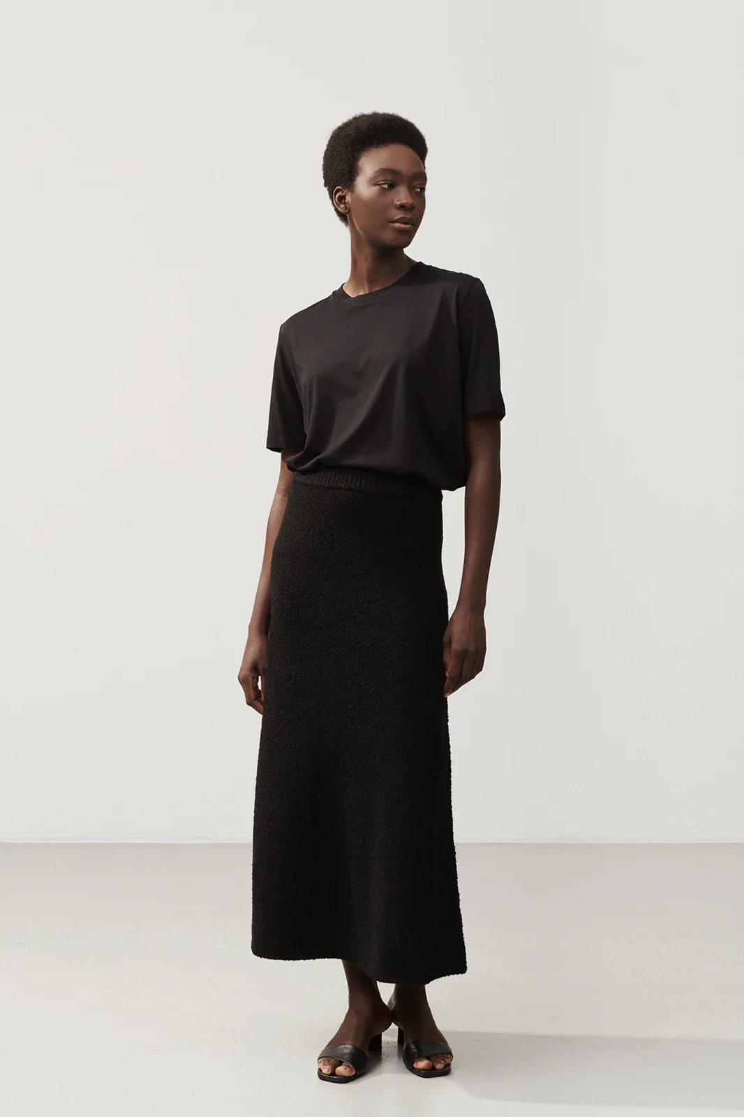 Francia is a beautiful slightly flared skirt made in soft merino wool and is the ideal skirt for an all-year-round wardrobe. With its ankle length, straight fit, and elastic waistband, this skirt will be your all-time favorite for every season. The soft fabric and casual fit make it comfortable to wear to office or various events, after works, and weekend getaways.